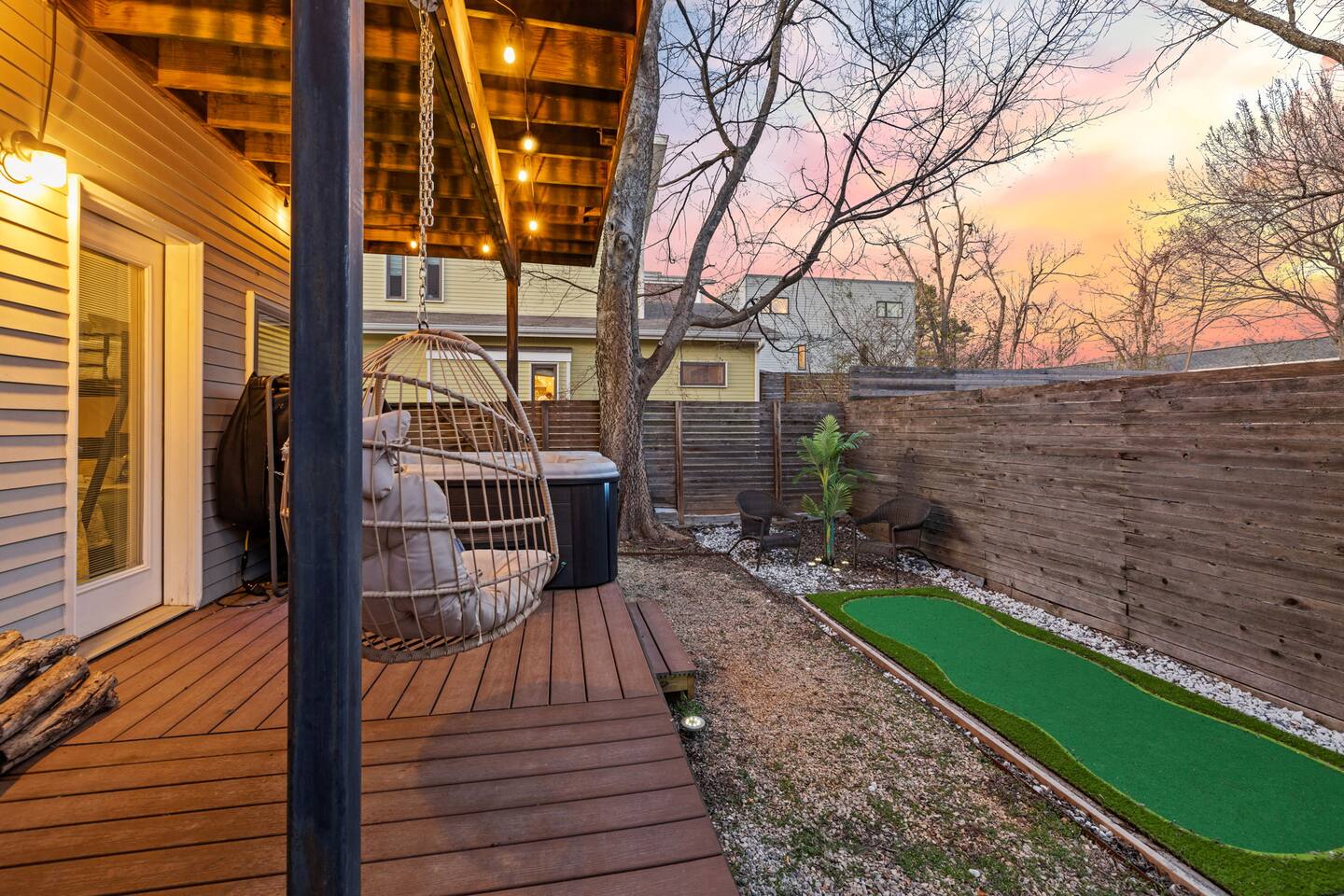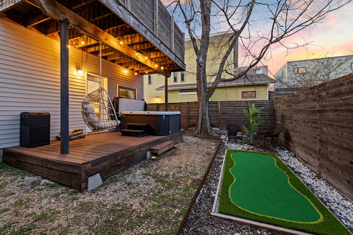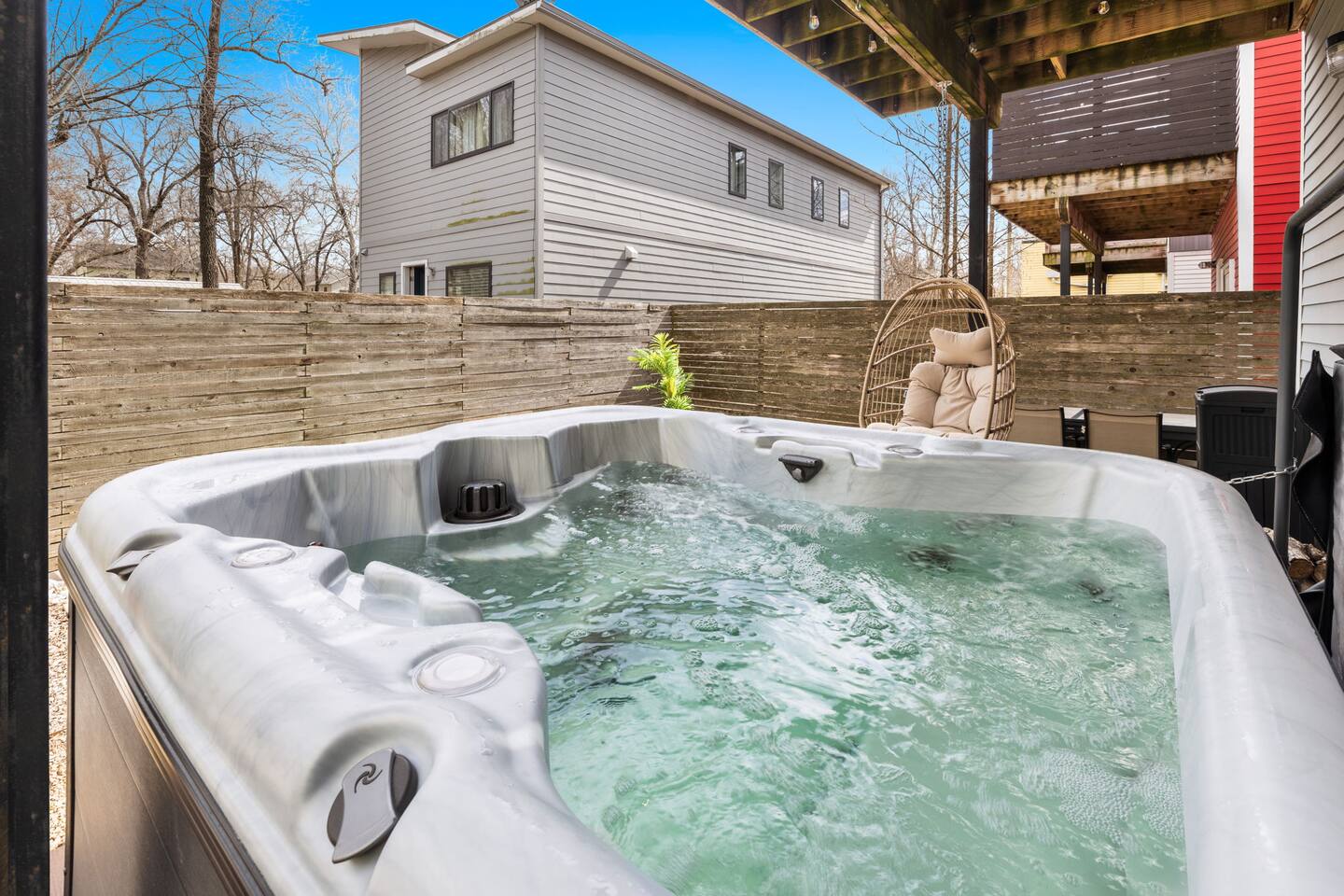 📍 Home Proximity - 1/4 mile to Fayetteville Tacos & Tamales - 3/4 mile to Hugos Burgers - 3/4 mile to Dickson Street - 3/4 mile to Theos - 1.8 miles to Razorback Stadium - Under 3/4 mile to JJ's Grill - Walking distance to Feed & Folly Rooftop ✨ Home Highlights 🛏️ 3 Cozy Bedrooms – Sleep up to 8 guests with 4 total beds | 3 king beds | 1 queen bed 🚿 3 Full Bathrooms – No waiting! Each includes modern fixtures and fresh linens along with a fully custom natural lit master bathroom 💦 Private Hot Tub – Soak under the stars after a day of exploring ⛳ Backyard Mini Golf – Fun for families, friends, and all ages ☕ Private Balcony – Enjoy coffee, cocktails, or grill out with a view of the city 🚶♀️➡️ Within walking distance of 20+ bar and restaurants 🧰 Additional Amenities 🍽️ Fully equipped kitchen 📶 Free Wi-Fi 🚗 On-site parking 👚 Washer & dryer ❄️ Central heating & A/C 🪞 Full length mirrors with blow dryers throughout. 📺 Smart Tv in every bedroom Whether you're here for fun or business, your Fayetteville experience starts here!