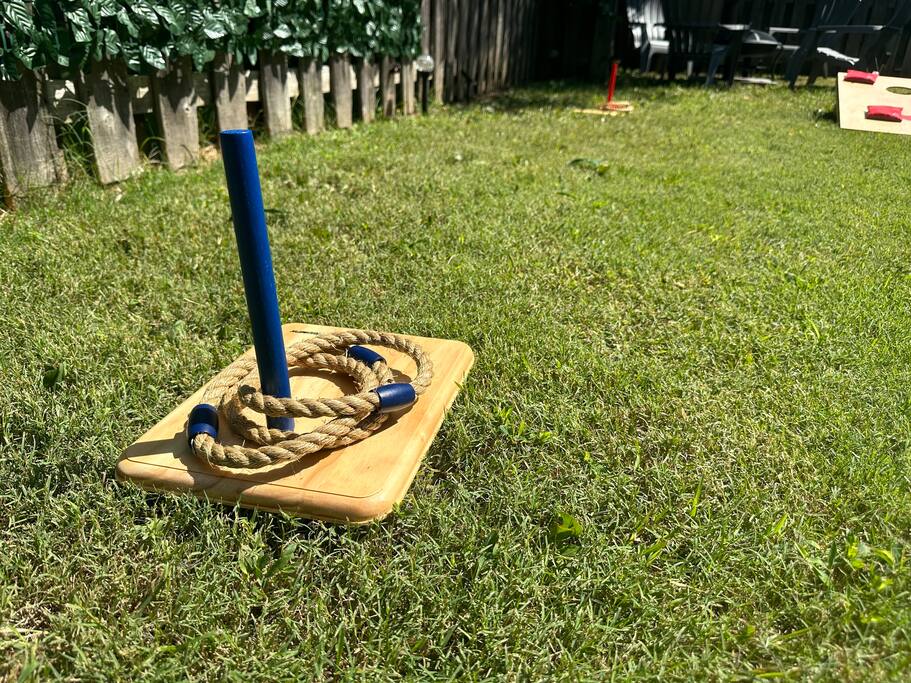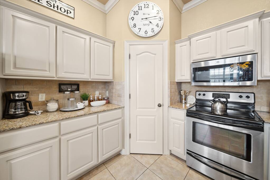 There is a hand massager in the movie room. Steamer in the master bathroom. The laundry room has an iron, laundry detergent, a Swiffer mop, and ironing board. There is a bug zapper in the game room. Charcoal, a lighter mustard, ketchup, mayonnaise, relish and grill seasoning are provided! Fire wood is also in the fire pit (no need to buy any)