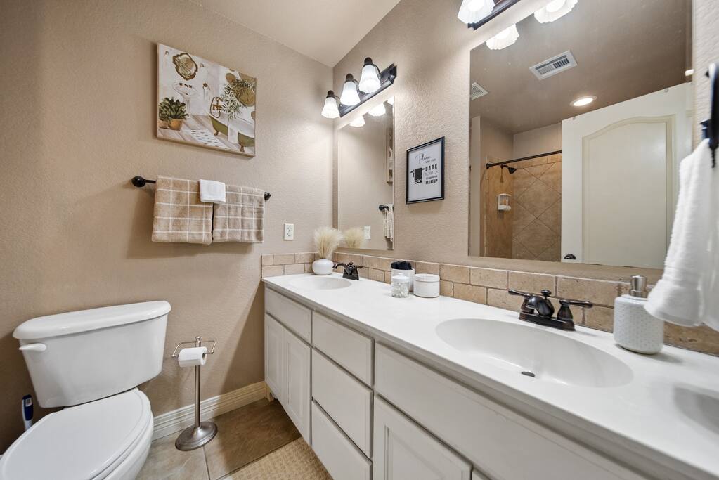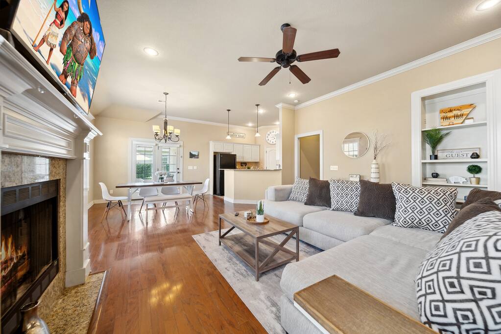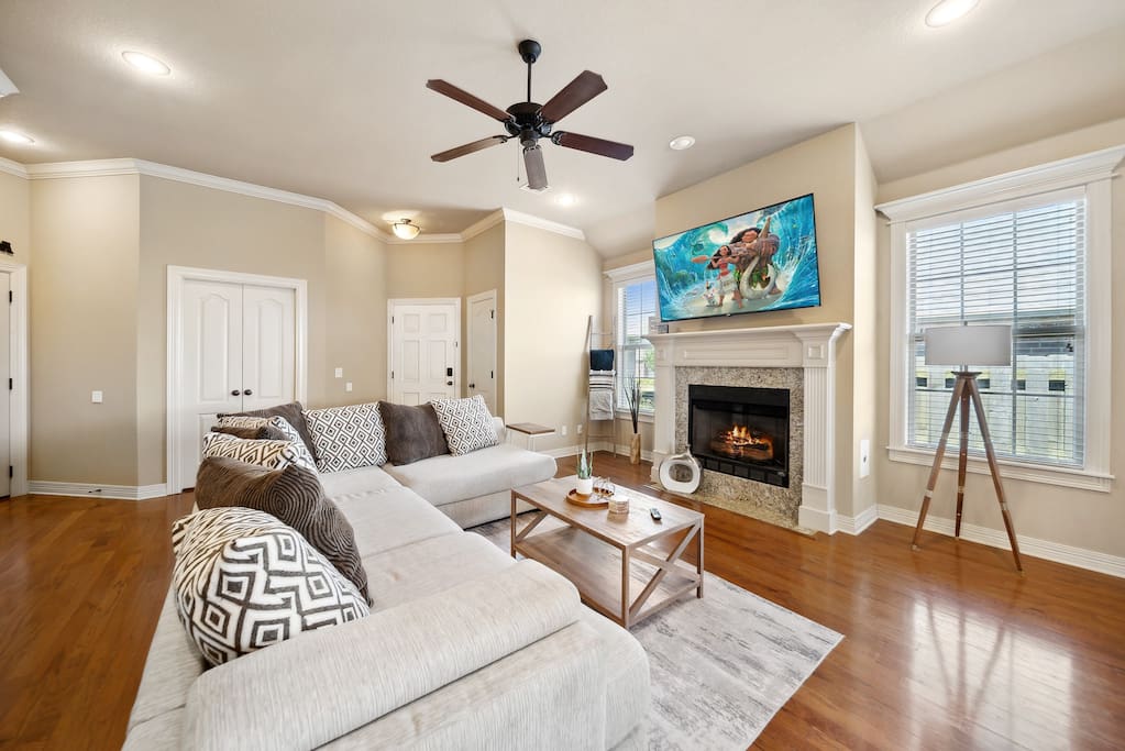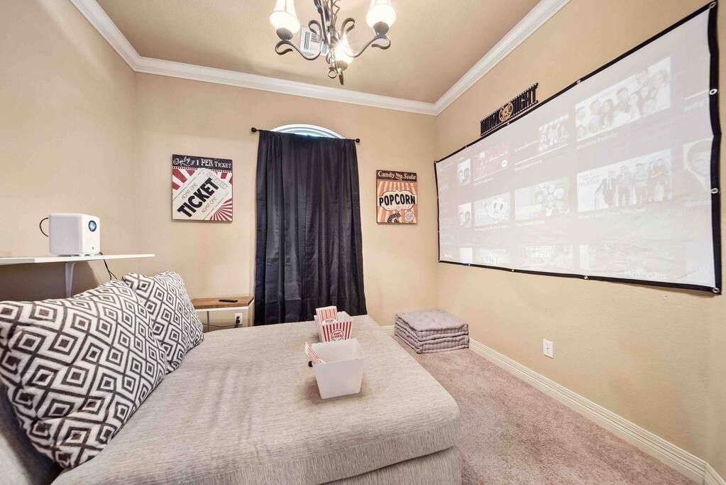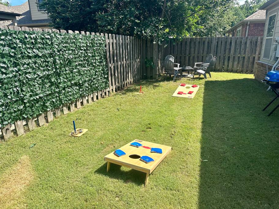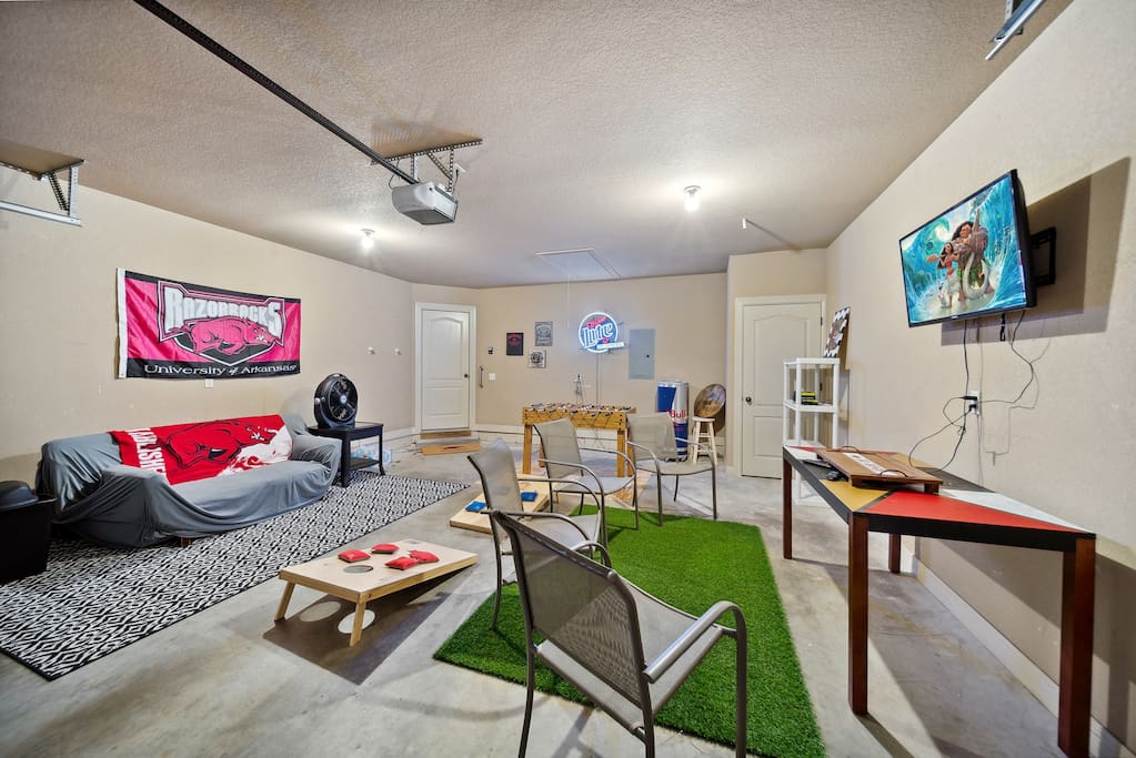 Welcome to your home away from home, where it's time to relax and enjoy In the master room, you'll find a gigantic king-sized bed, a Roku smart TV, a luxurious Jacuzzi, and an abundance of towels, along with a convenient charging port and more. The second and third bedrooms feature comfortable queen beds, charging ports, and additional amenities. Mini fans are also provided in each room for your comfort. Our commitment to cleanliness is our number one priority. Our dedicated cleaning team not only conducts thorough cleaning between stays but also schedules monthly deep cleaning sessions to ensure that every corner meets our standards. Our management team also personally inspects the property before each guest's arrival to ensure that everything is in order.. The refrigerator is thoughtfully stocked with a selection of beverages, including Mountain Dew, Sprite, Coke, and water. (The game room's Red Bull fridge is also stocked with drinks!) Our open floor plan showcases a beautifully decorated living and dining area, designed for your comfort and enjoyment. The fully equipped kitchen features a complimentary coffee bar, where you can savor your favorite brew on the back patio. Whether you're relaxing in the hot tub, sharing stories of the Hogs win by the fire pit, or grilling while playing baggo, our space is designed for your pleasure. Out in the game room, you'll discover mini golf, a Roku TV, foosball, the neon wall, and the Red bull fridge with many refreshments. ( Baylie and I would love for our guests to take photos of their experiences and send them to us! We will share your experience on our website "thehill-retreat.com") So come stay at The Hill Retreat and message us your favorite flick in the movie room! (PS ours is Titanic LOL)
