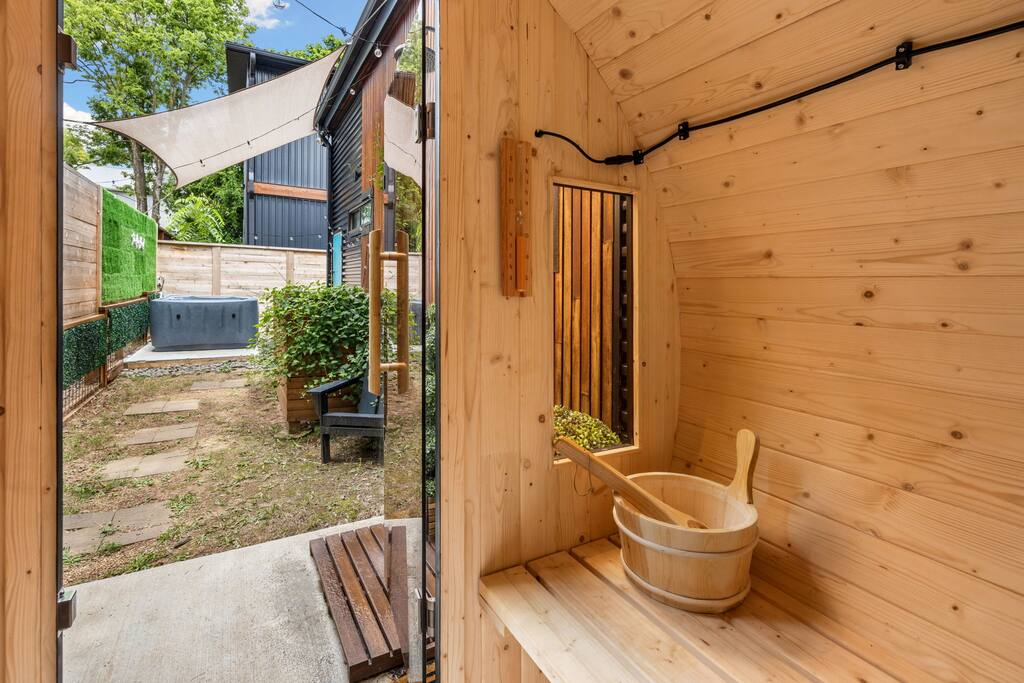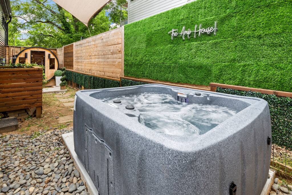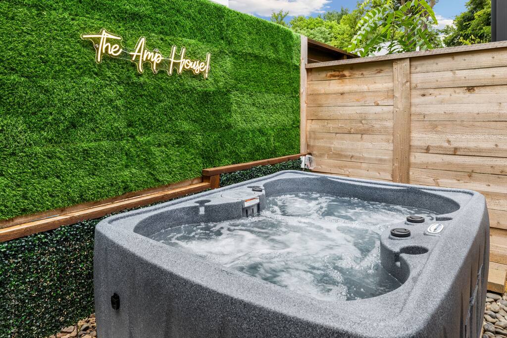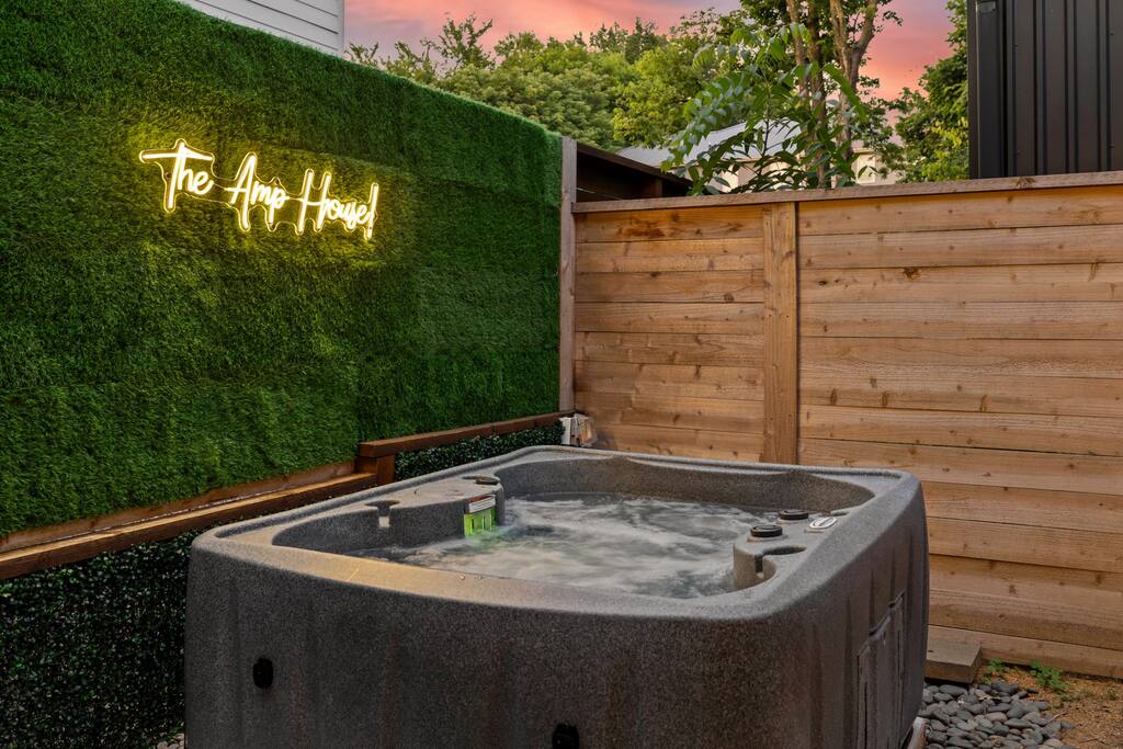 🏠 Main House Highlights: • Fully equipped oversized kitchen with bar style seating for 5+ •. 2 in 1 washer and dryer (never forget to switch clothes over again) •. Cozy living room with smart TV and plush sofa •. Comfortable loft style queen size bed and bedroom upstairs for restful sleep •. 10 foot real working glass garage door with 14 foot tall ceilings (makes accessing the deck a breeze) •. Oversized Spa-inspired bathroom designed for relaxation and comfort 🌞 The MEGA DECK (750+ sq ft): •. Legendary space that has been used for live music festivals & block parties since 2017 •. Plenty of seating, games, and a sunshade umbrella for outdoor fun • Perfect spot to relax or entertain friends 🎬 The Seperate Movie Room (AMP Speaker Inspired): •. Separate sound dead-end building modeled after an AMPLIFIER speaker (That really works!) •. Big screen 65 inch HD smart TV with premium sound system and swivel mount to be able to watch from the outdoor deck •. Modern Egg chairs as well as additional chairs to gather groups together. 🔥 Outdoor Luxury: •. Private sauna with attached outdoor shower for pure relaxation •. 4 person hot tub with grass accent wall and custom neon sign • BBQ grill area —ideal for cookouts and chilling ***GPS DRIVE TIME***🚘 - University Of Arkansas: 5 mins - Dickson St (Downtown): 6 mins -TheatreSquared: 5 mins -Walker Park: 2 mins -Tacos and Tamales: 1 mins